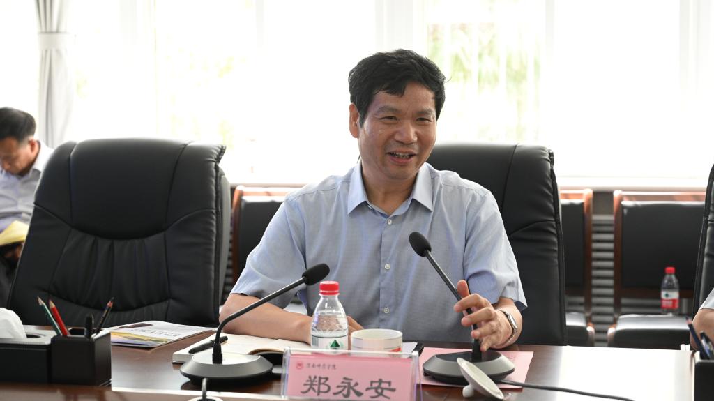 在调研交流座谈会上,我校副校长曹强介绍了学校基本情况。郑永安围绕“发展、奋斗、融合、特色”等关键词,分享了南京航空航天大学在人才引进、科学研究、教师队伍建设、学科建设、马克思主义学院建设等方面的典型经验做法,就校园精神文明建设、加强校地合作、推进新校区建设等与参会人员进行了交流,并共同探讨了推动高等教育高质量发展的路径。他指出,推动学校高质量发展要胸怀国之大者,响应国家发展需要,找好大思路、把好大方向;要重视发挥集体作用,营造良好氛围;要积极为教师、学生及学校发展挖掘更广泛的优质资源;要关心教师发展和学生成才,凝聚起学校发展的强大力量。