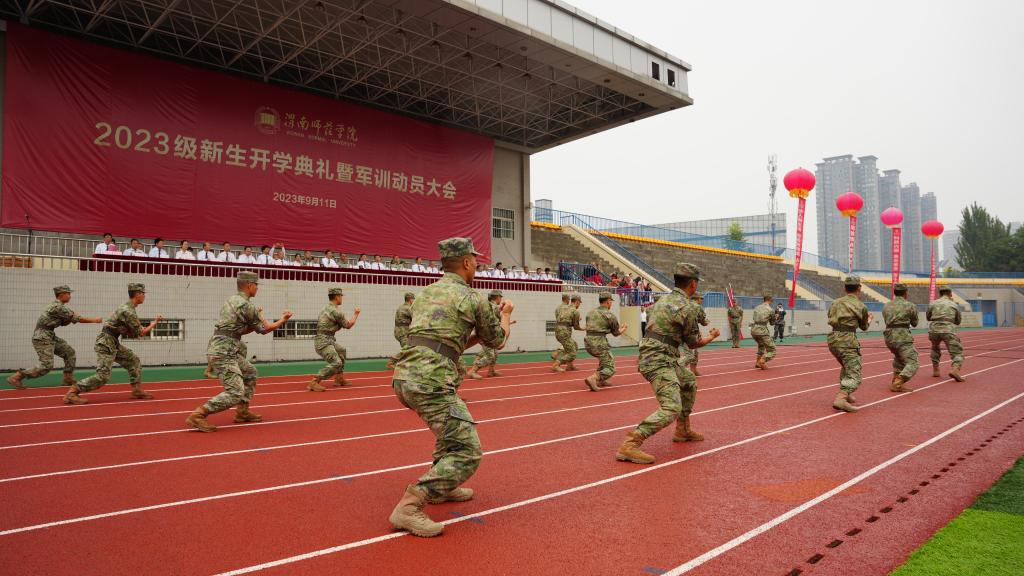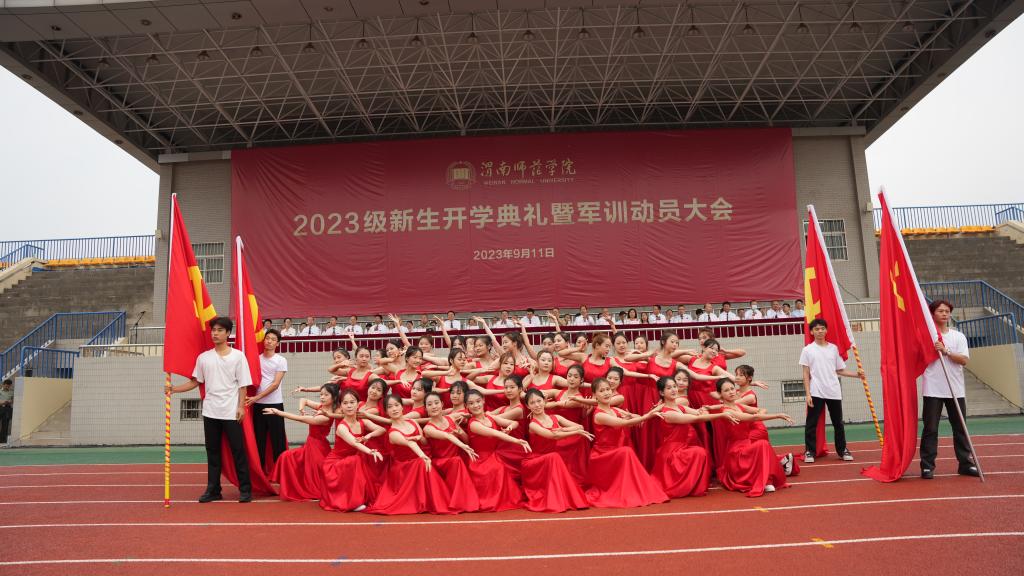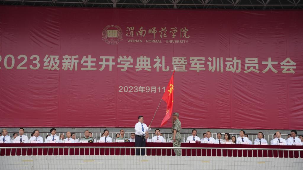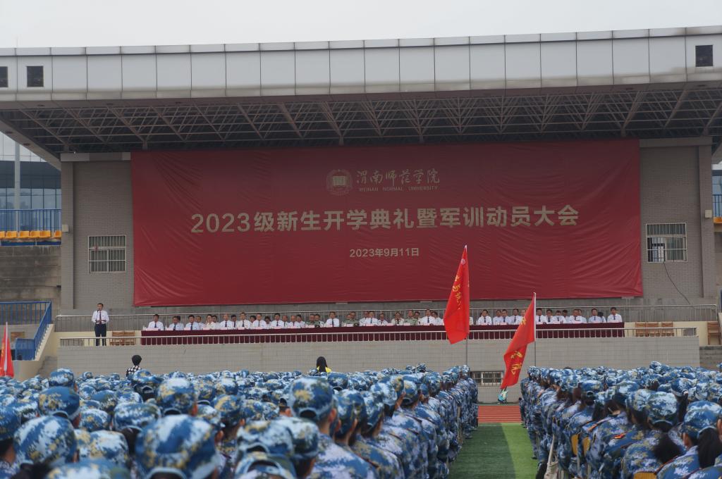 9月11日上午,渭南师范学院2023级新生开学典礼暨军训动员大会在朝阳校区田径场隆重举行。来自全国各地的5000余名新同学现场参加典礼并庄严宣誓,“愿以吾辈之青春,捍卫盛世之中华!”