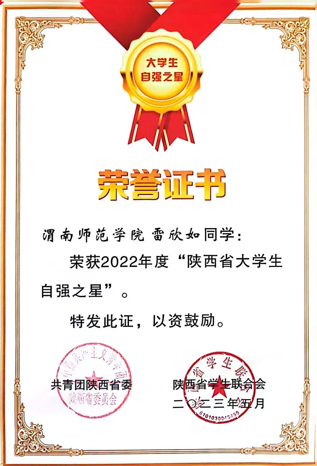 近日,由共青团中央、全国学联指导,中国青年报社、新东方教育科技集团、中国青年创业就业基金会联合开展的2022年度“中国大学生自强之星”推报活动结果揭晓。经学校团委推荐、省级初评、全国评审等环节,我校来自人文学院汉本194班纪蕾和数学与统计学院学院数本211班雷欣如双双入选,荣获2022年度“中国大学生自强之星”奖学金,获奖人数再创新高。