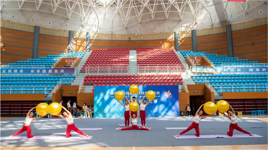 9月14日,我校健身瑜伽代表队参加了2023年陕西省第四届全民健身运动会社会组健身瑜伽比赛。本次比赛由陕西省人民政府主办,陕西省体育局、宝鸡市人民政府承办,陕西省社会体育运动发展中心、陕西省健身瑜伽协会、宝鸡市体育局、扶风县人民政府协办。西安体育学院、宝鸡文理学院、陕西学前师范学院等数10支代表队,约240名选手参加比赛。