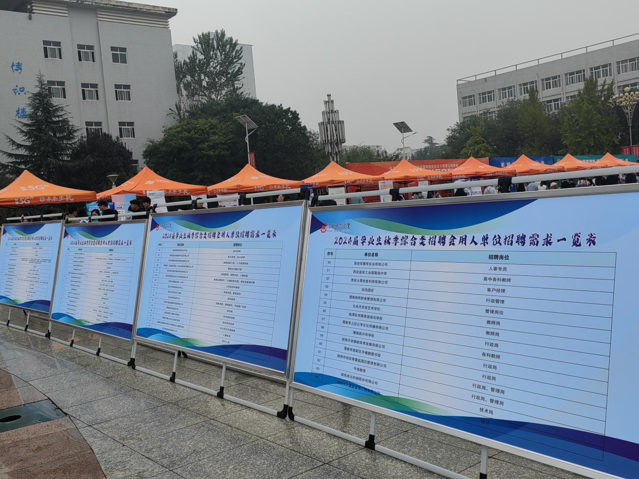 此次招聘会涵盖了管理、金融、教育、艺术、体育、房地产、信息技术服务、化工等多个行业领域,与学校学科专业设置高度匹配。吸引了内蒙古实业有限公司、山东滨家科技有限公司、西安市高陵区第二小学、尧柏特种水泥集团有限公司、陕西成达机械股份有限公司等72家企业单位参会,提供岗位1300余个,2024届1600余名学生参与招聘会,投递简历1200余份。浙江科研电子科技有限公司、陕西学大信息技术有限公司、上海坤鹏医药科技有限公司等6家单位在校内组织有就业意向的学生召开专场就业宣讲会,极力促进毕业生了解用人单位,提升求职签约率。