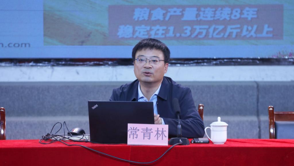 报告会上,常青林以“端牢中国饭碗”为主题,从什么是粮食安全、习近平新时代国家粮食安全观的形成背景、基本内涵、重大意义等四方面深入浅出地介绍了新时代粮食和粮食安全的概念和内涵;阐释了习近平新时代国家粮食安全观是对马克思经典作家粮食观的创新和发展,是对中国共产党粮食安全思想的继承和升华,是对古今中外粮食安全问题经验教训的深刻总结,是对新时代我国粮食安全面临新问题的精准把握;讲授了粮食安全“头等大事”、“永恒课题”的地位论,粮食安全“长期紧平衡态势”的形式论,“中国饭碗装中国粮食”的粮食安全目标论,“藏粮于地、藏粮于技”的粮食安全方法论,“市场机制和政府支持结合”的粮食安全机制论;总结了习近平新时代国家粮食安全观开辟了马克思主义粮食观中国化的新境界、为当前我国开展粮食安全工作赢得了主动权、为新时代粮食安全战略规划提出了新思路、为解决世界粮食安全问题提供了中国方案等重要意义。主题报告站位高、立意深、内涵丰富、论述深刻、视野宽阔、总结精准,是一场精彩的新时代国家粮食安全的报告,也为与会师生上了一堂主题鲜明、紧贴时代的专题思政课。