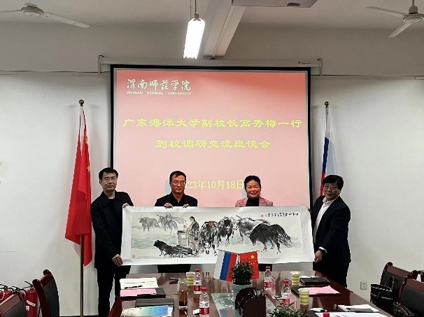 10月18日上午,广东海洋大学副校长高秀梅、国际交流与合作处处长陈进军等一行5人来莫斯科艺术学院调研交流。我校党委委员、副校长曹强,国交处相关负责人及莫斯科艺术学院全体处科级干部陪同调研交流。
