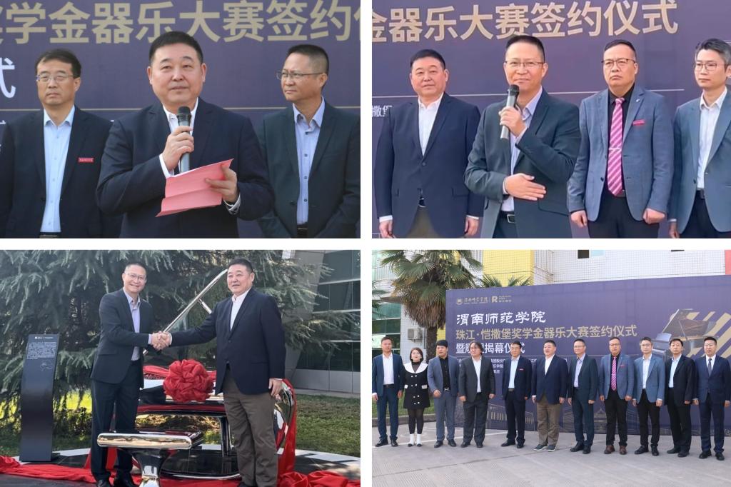 10月30日,我校举办渭南师范学院珠江·恺撒堡奖学金签约仪式暨雕塑揭幕仪式。广州珠江钢琴集团股份有限公司党委书记、董事长李建宁,我校党委书记卓宇,副校长曹强,党委委员、宣传部部长李明敏及音乐学院、莫斯科学院党政负责人等参与此次揭幕仪式。仪式由校地合作与校友工作处处长王建平主持。