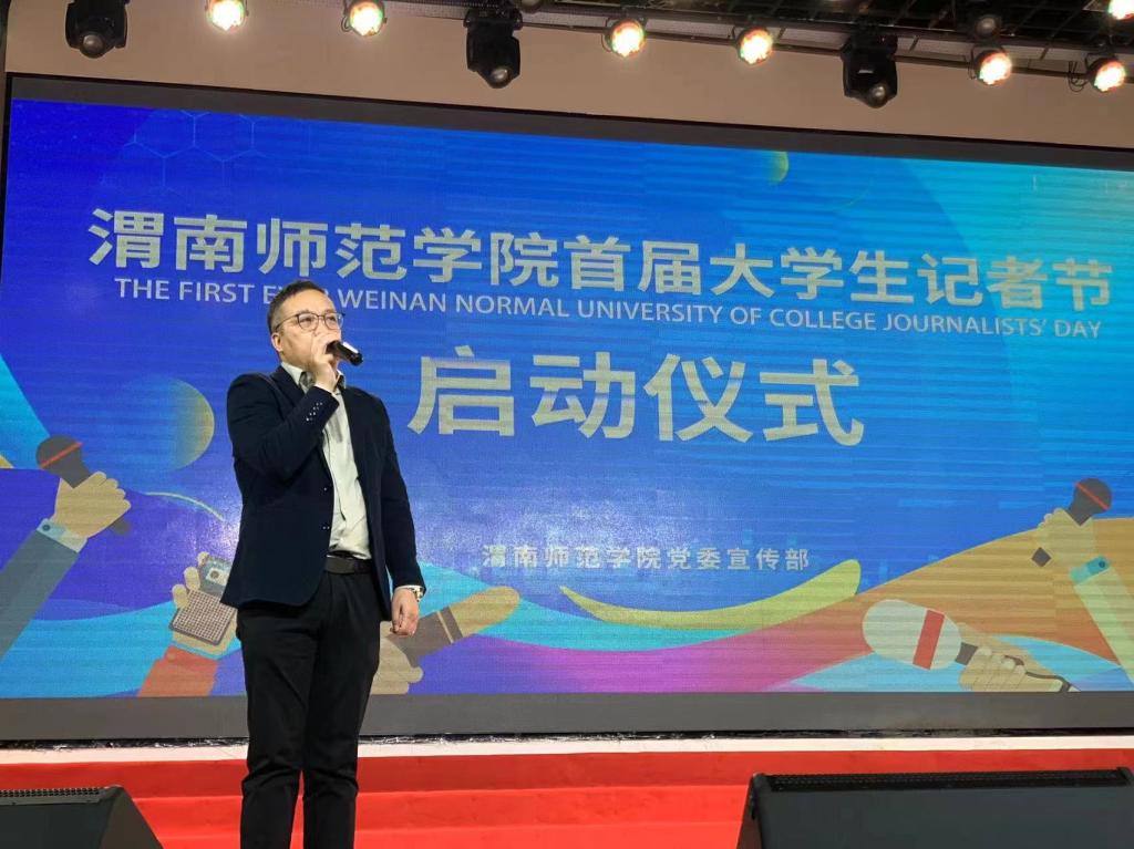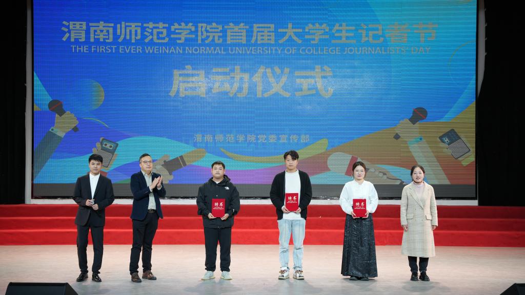 演出开始前,李明敏宣布渭南师范学院首届大学生记者节正式启动并为在场的学生记者送去节日的祝福。大学生记者节的设立是为了给更多学生记者提供一个展示自我的平台,进一步促进校园文化和网络文明建设,将在每年的11月份开展大学生记者节系列活动。仪式中,十余名“优秀学生记者”接受了表彰,并对全媒体主席团成员进行了聘任。