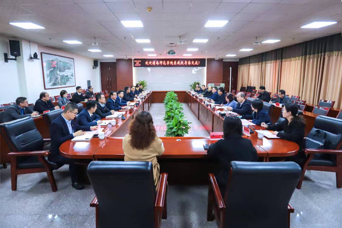 座谈会上,双方围绕学科建设、科学研究、师资队伍建设、学校发展等方面进行了深入交流,分享了办学特色,共同探讨两校发展路径,破解发展过程中碰到的新困难、新问题,携手共进,共同发展,为建设教育强国贡献非省会城市师范院校的力量。