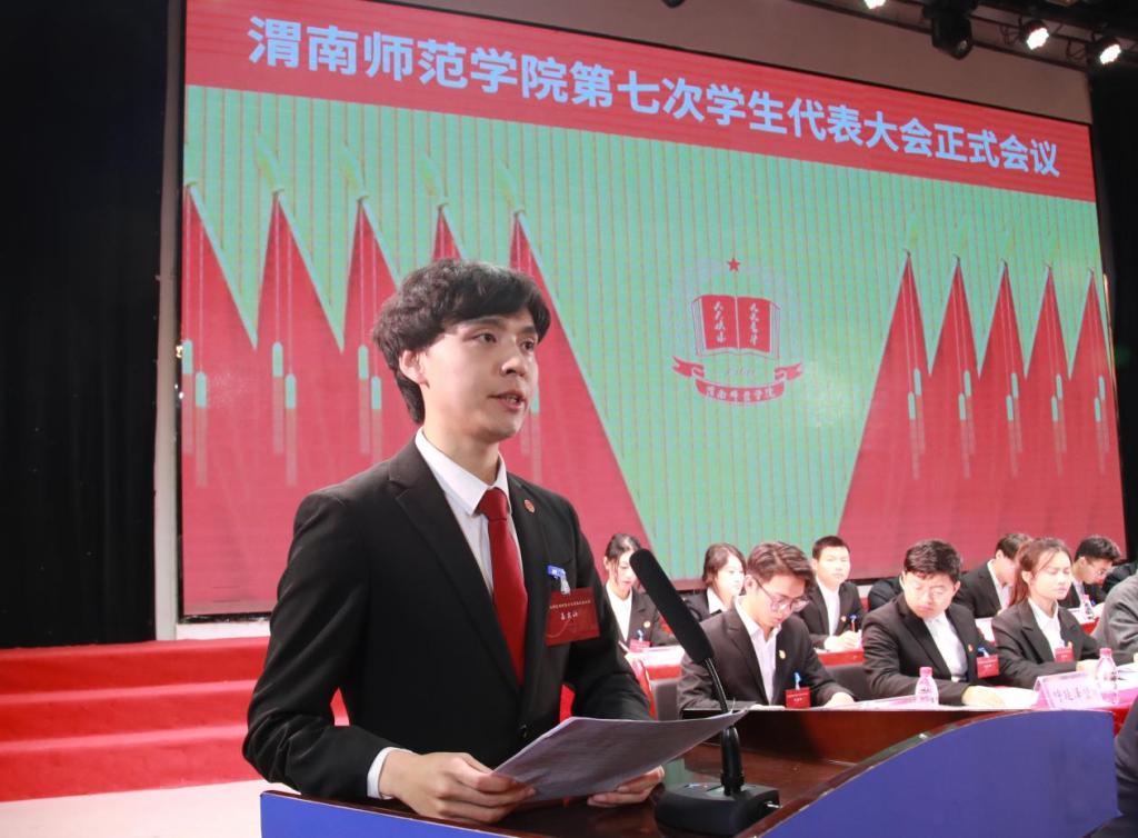 会议听取并审议通过《渭南师范学院第六届学生委员会工作报告》,于卓鑫等21名同学当选第七届学生委员会委员,王富强等4名同学当选学校第七届学生会主席团成员。