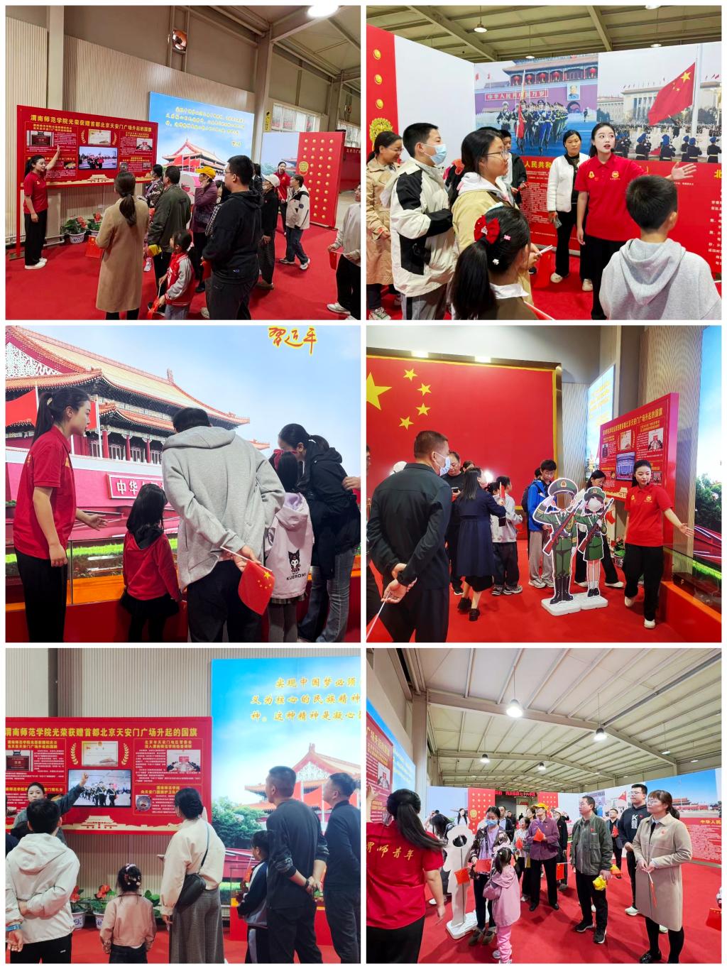 10月1日,渭南师范学院“天安门广场国旗展馆”举办“百姓心聚场 向国旗致敬”市民开放日主题活动,很多市民来到这里参观打卡,共同庆祝祖国母亲的生日。