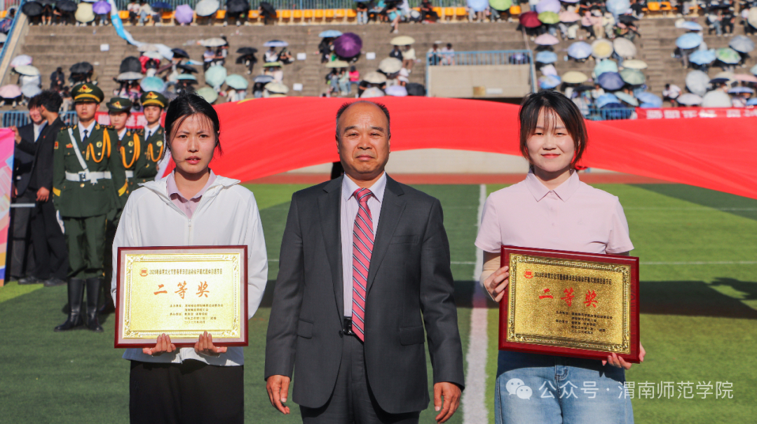 开幕式上,仪仗队、裁判员方队与各学院运动员方阵步伐铿锵、口号嘹亮,充分展现渭师师生朝气蓬勃的精神风貌。庄严的升旗仪式后,党委副书记汪勇、常青林分别致开幕词,运动员代表、裁判员代表 依次庄严宣誓,承诺恪守体育道德、严守比赛规则。随后,各二级学院团体节目精彩上演,将现场氛围推向高潮。