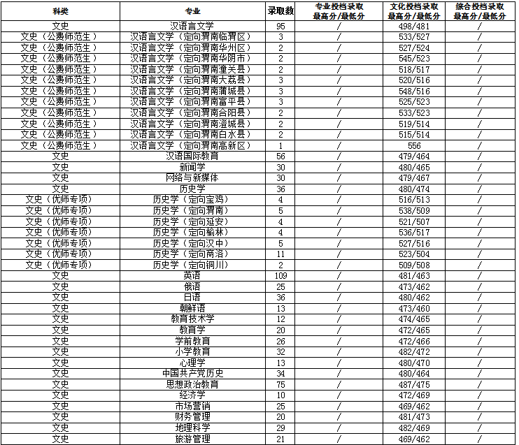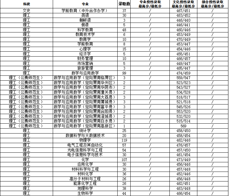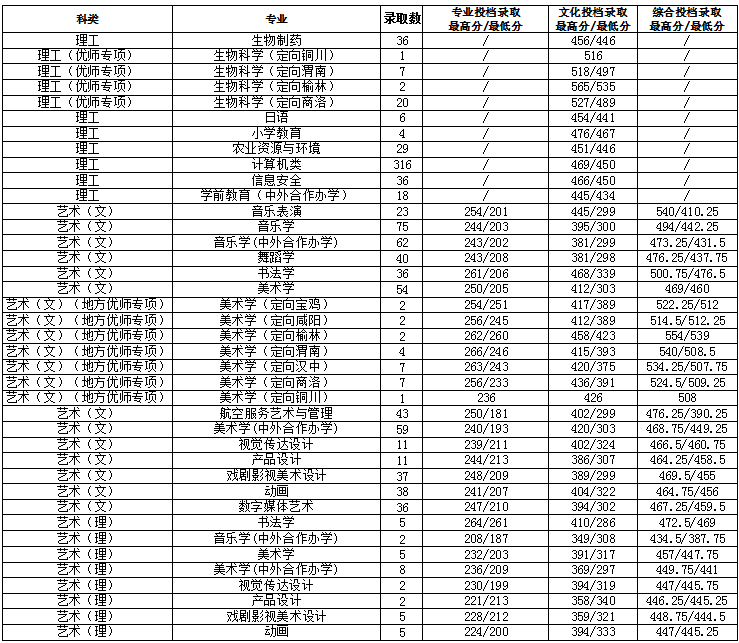 渭南师范学院2024年分省分专业录取最高最低分(陕西部分)