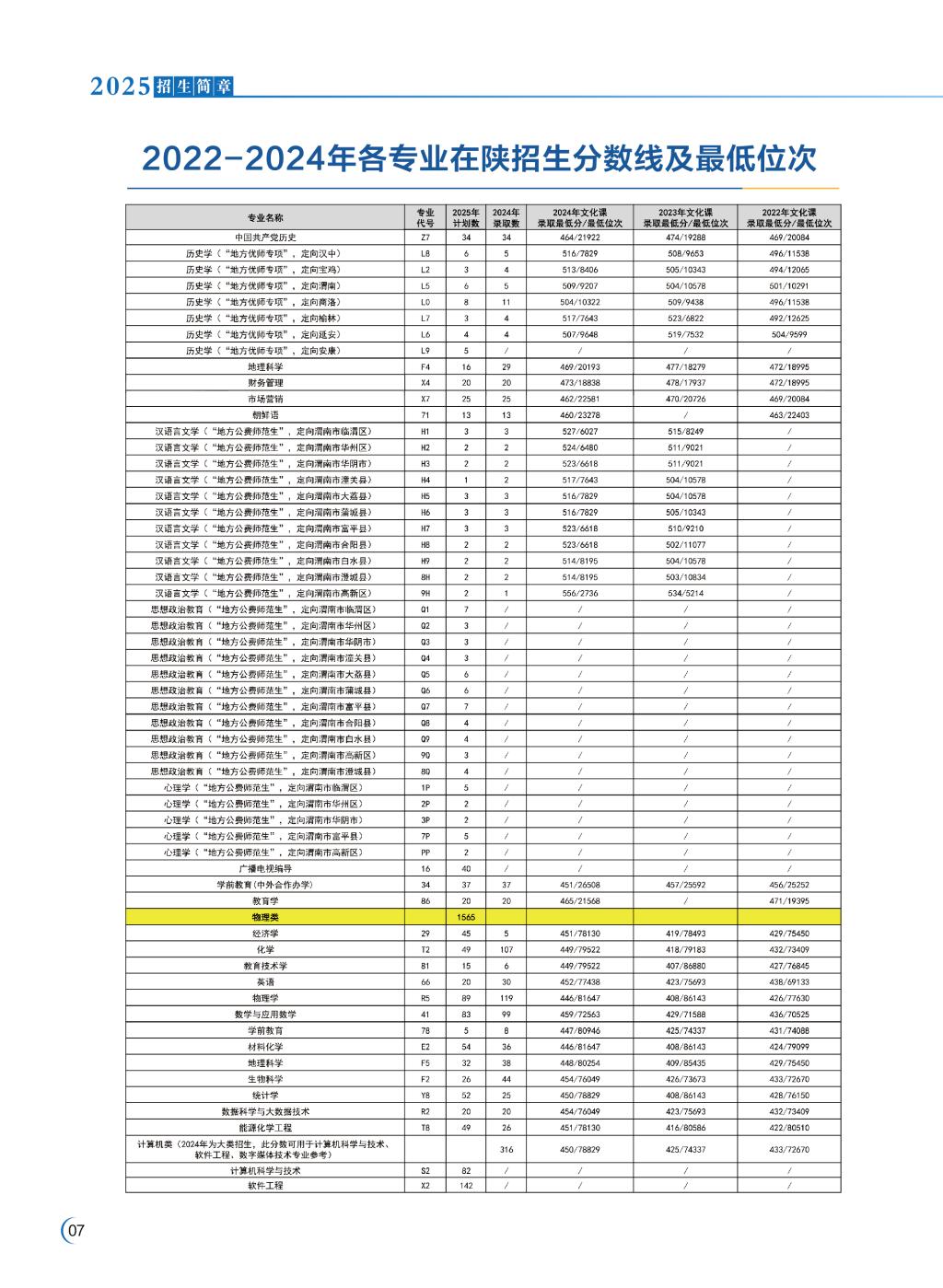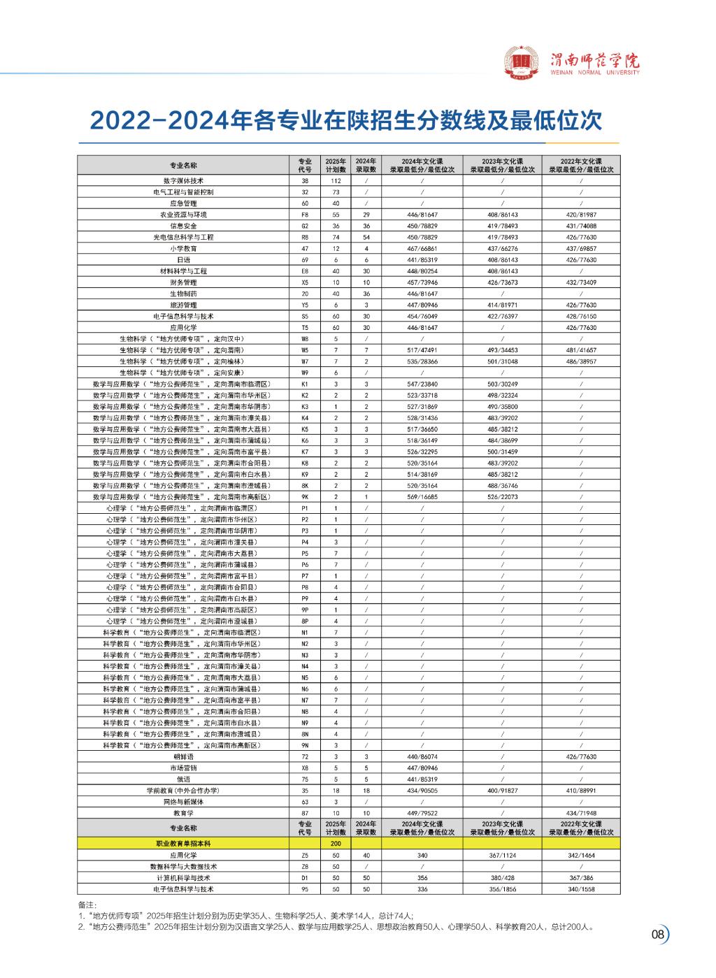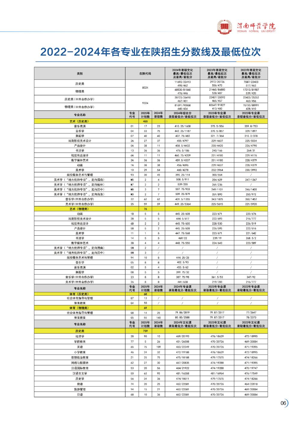 渭南师范学院2025年在陕招生计划及2022-2024年在陕录取分数线