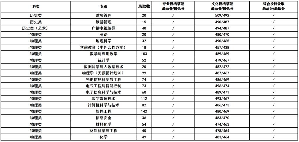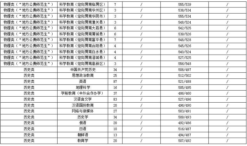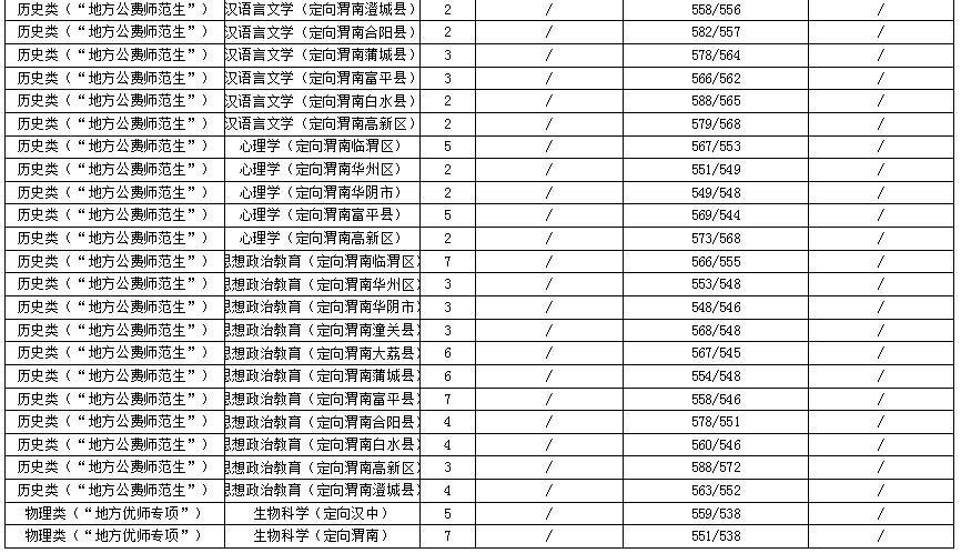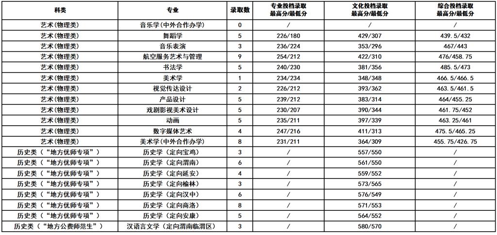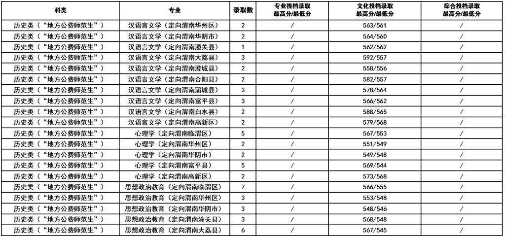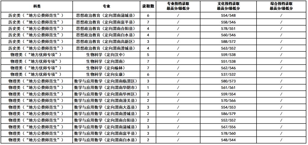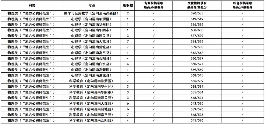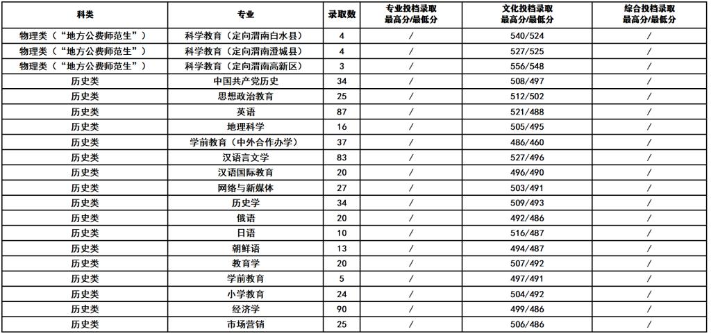 渭南师范学院2025年分省分专业录取最高最低分(陕西部分)