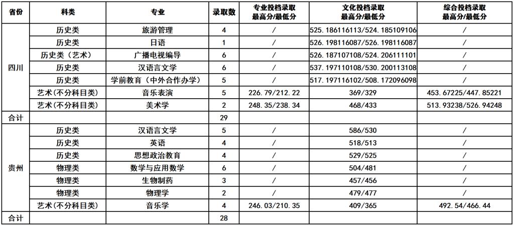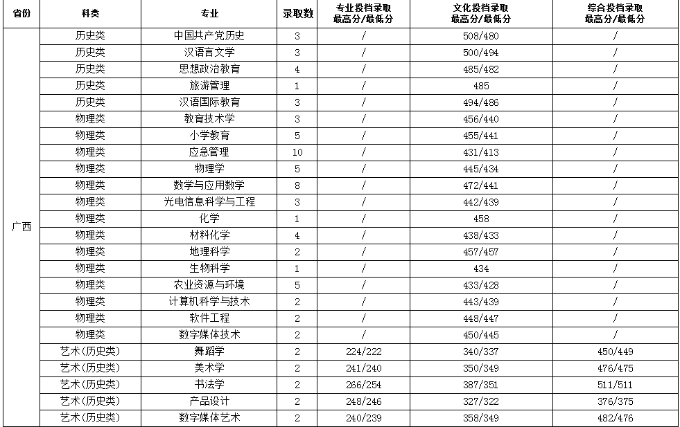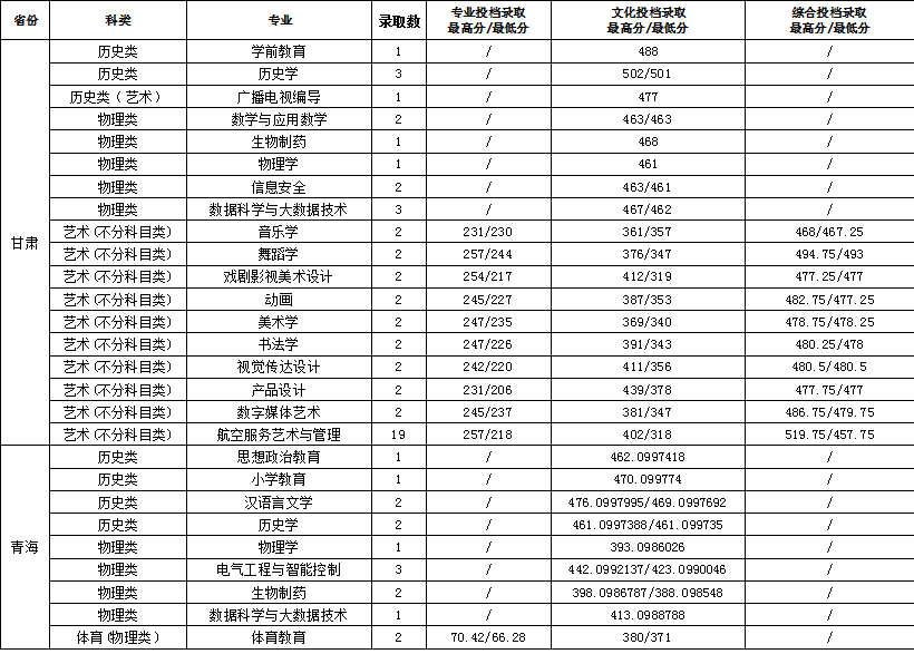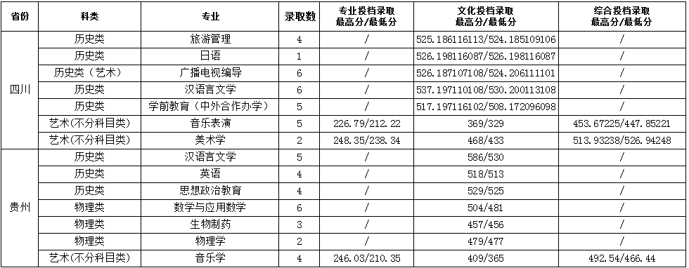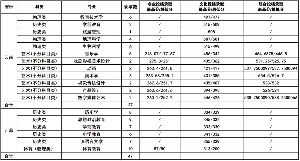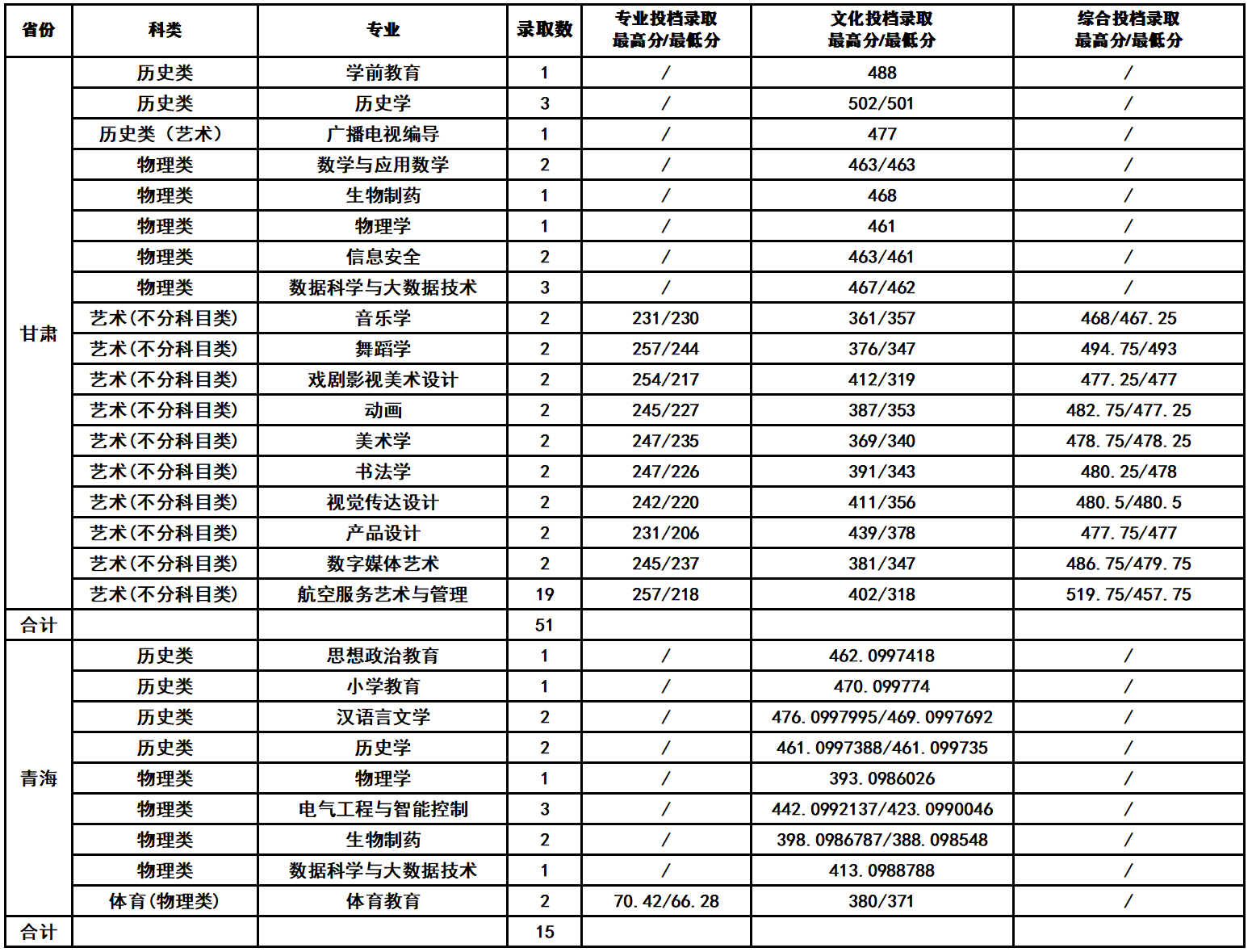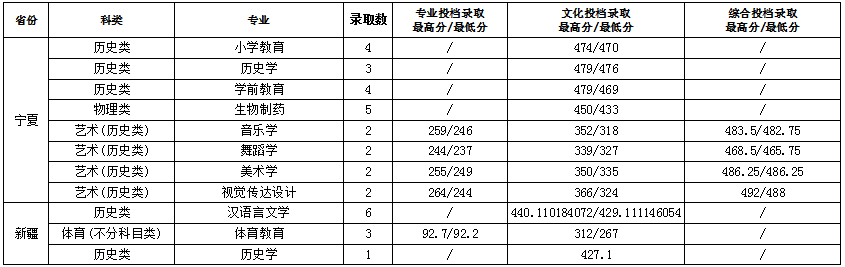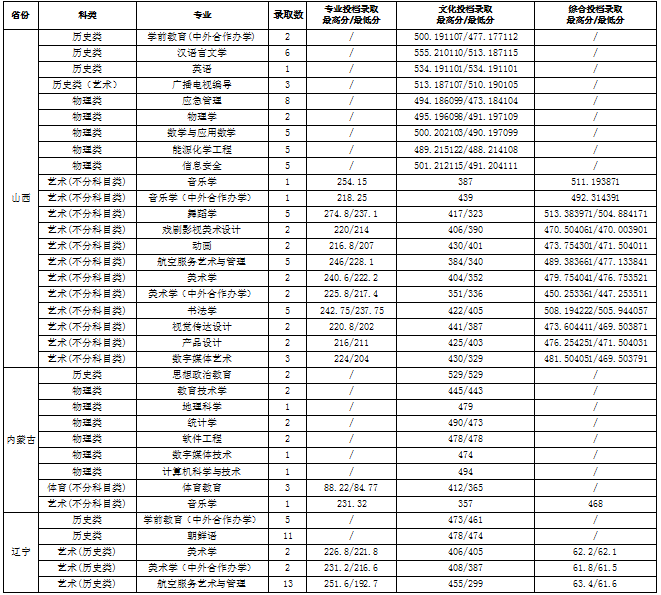 渭南师范学院2025年分省分专业录取最高最低分(外省部分)