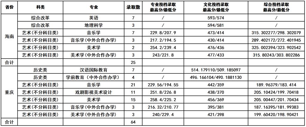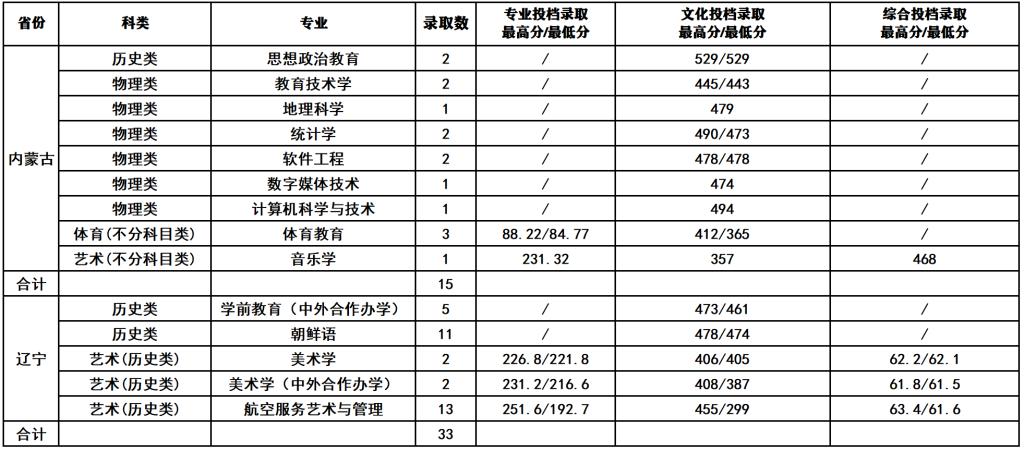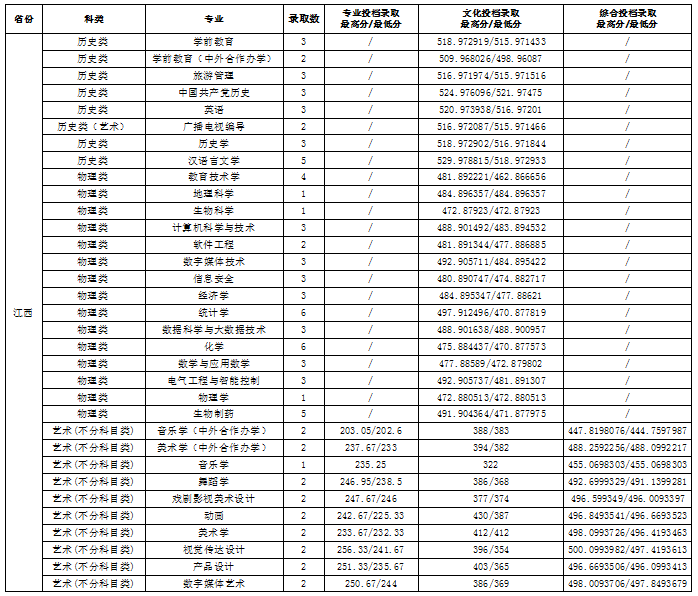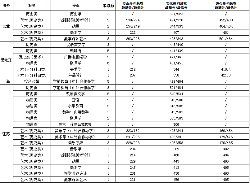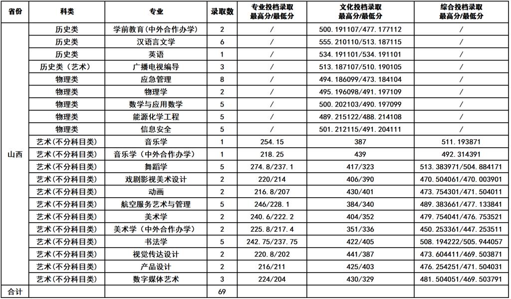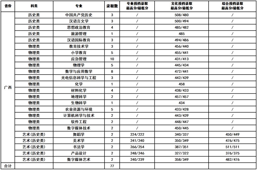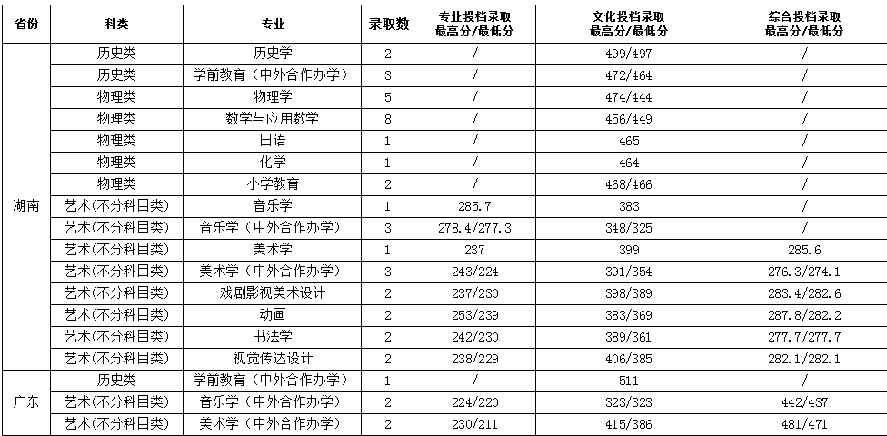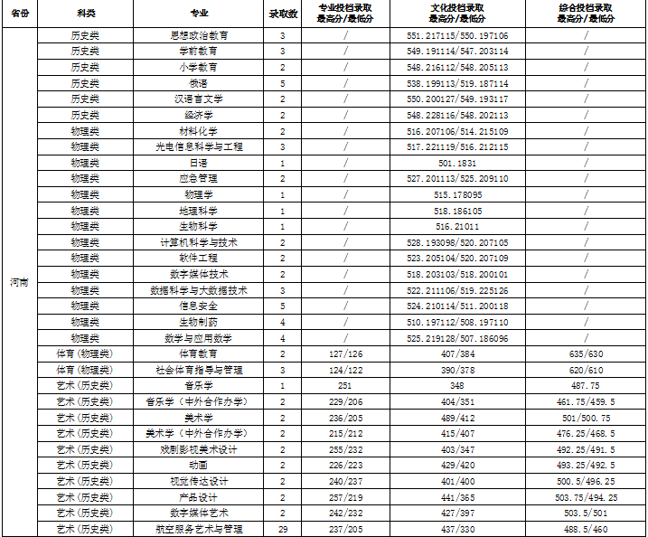 渭南师范学院2025年分省分专业录取最高最低分(外省部分)