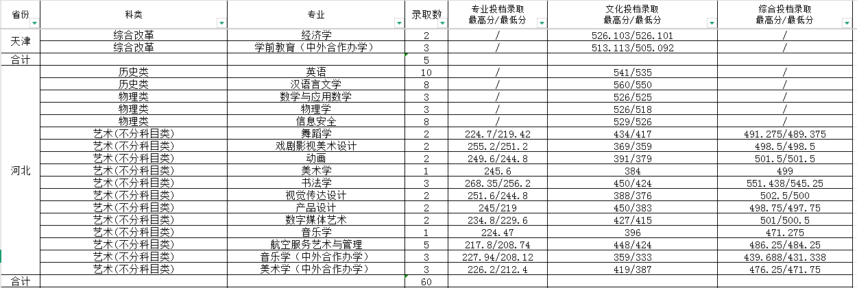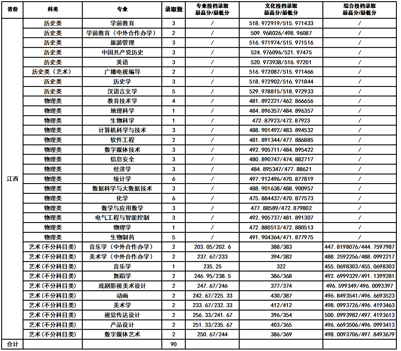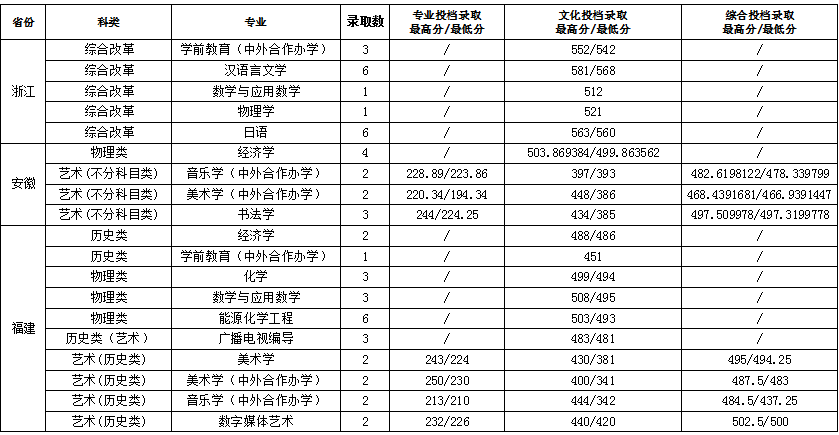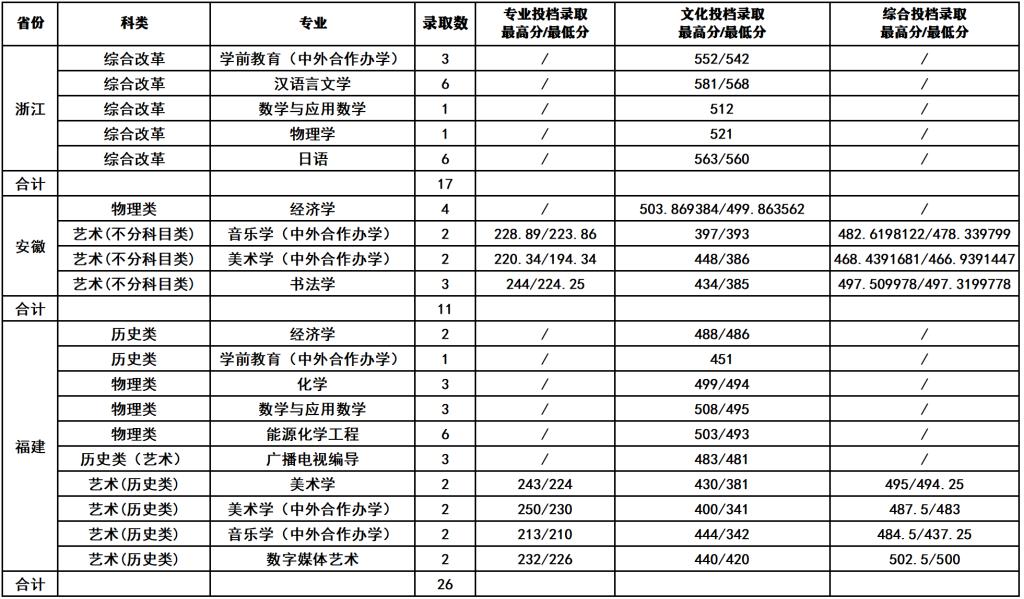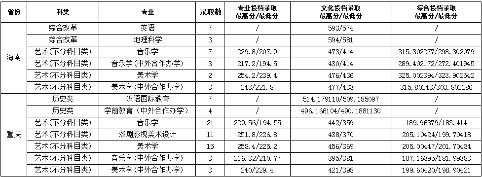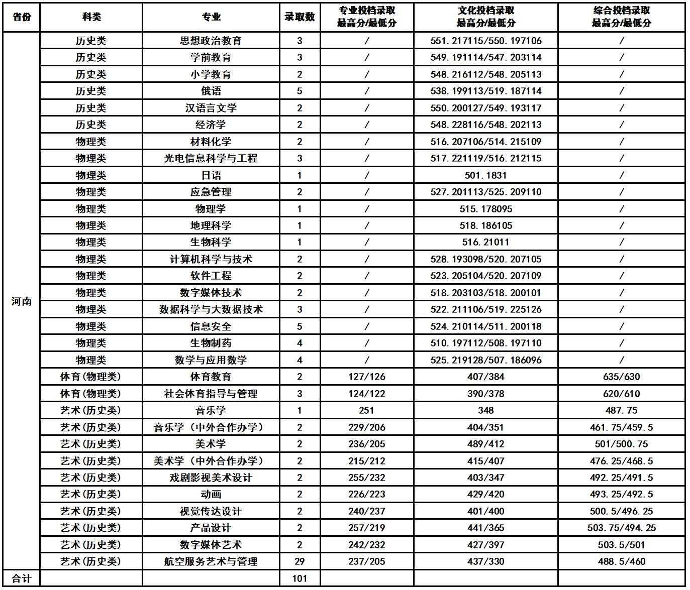 渭南师范学院2025年分省分专业录取最高最低分(外省部分)